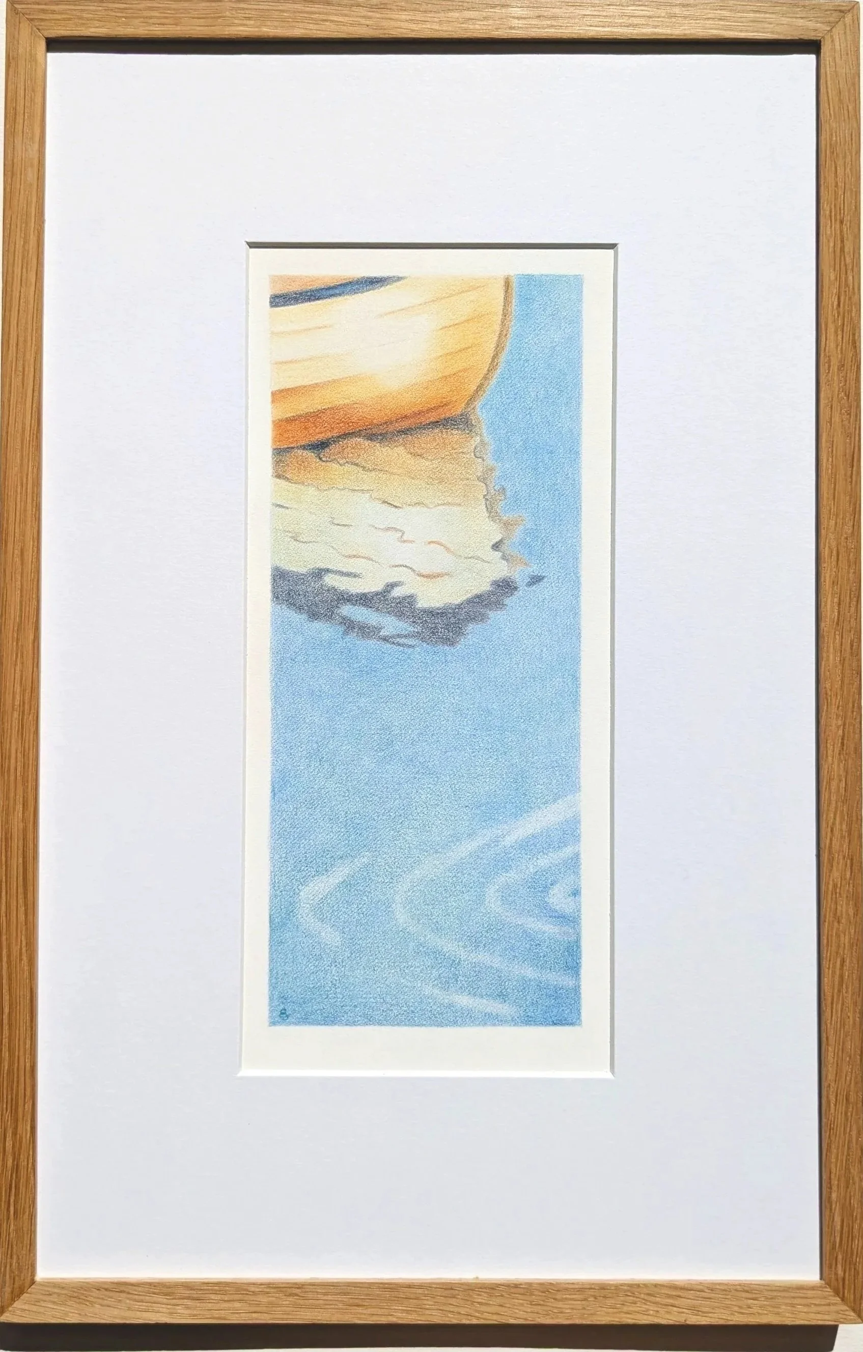 “This series of three works create a dialogue with one another; the reflections shimmer as the boat shifts on the mooring ropes. Overlapping clinker boards distort in the ripples.”